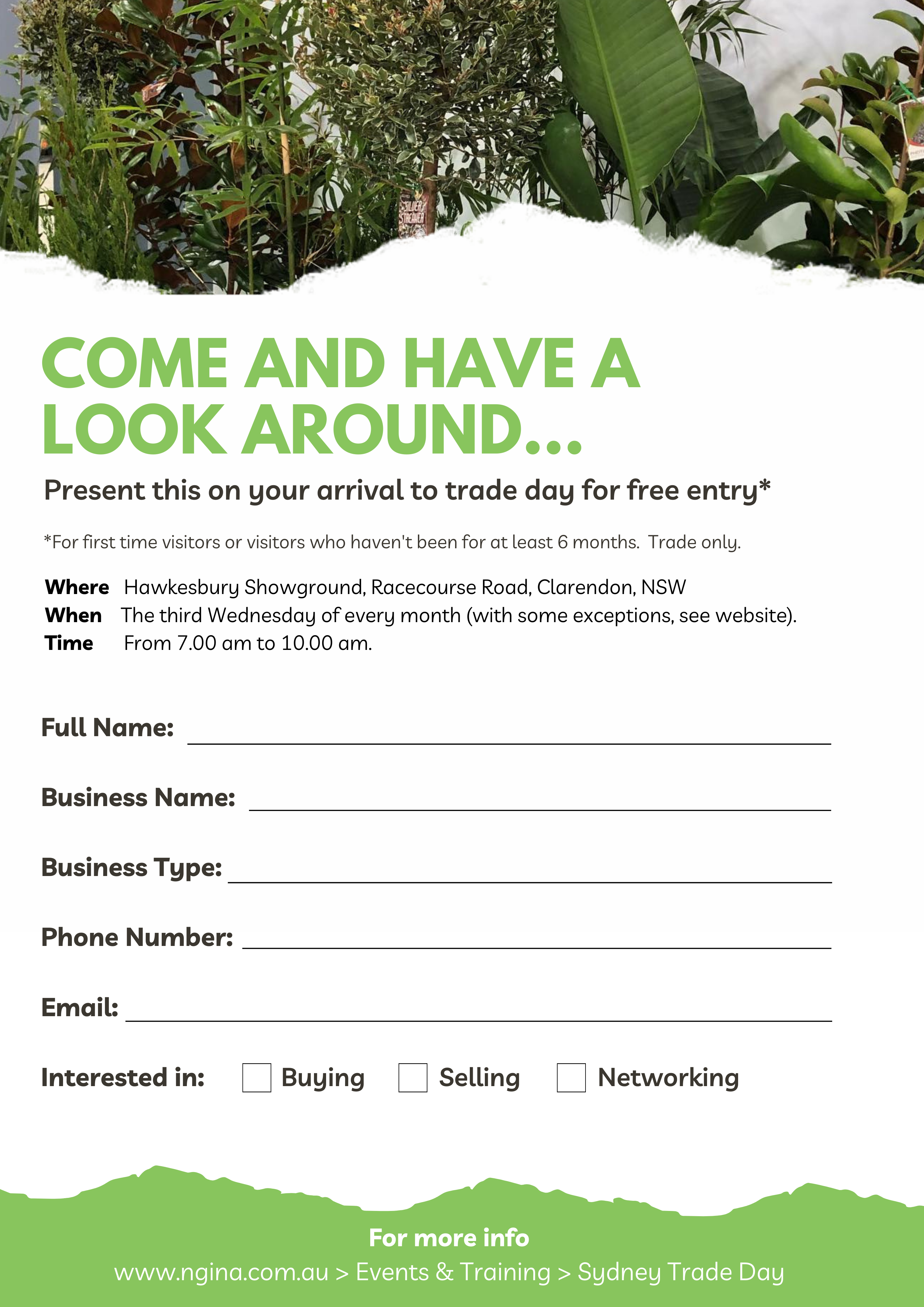 You are eligible to attend Sydney Trade Day as a buyer if your business is industry related and you can show proof of trade. Some examples of industry related businesses include retail and wholesale nurseries, florists, landscapers and garden maintenance.